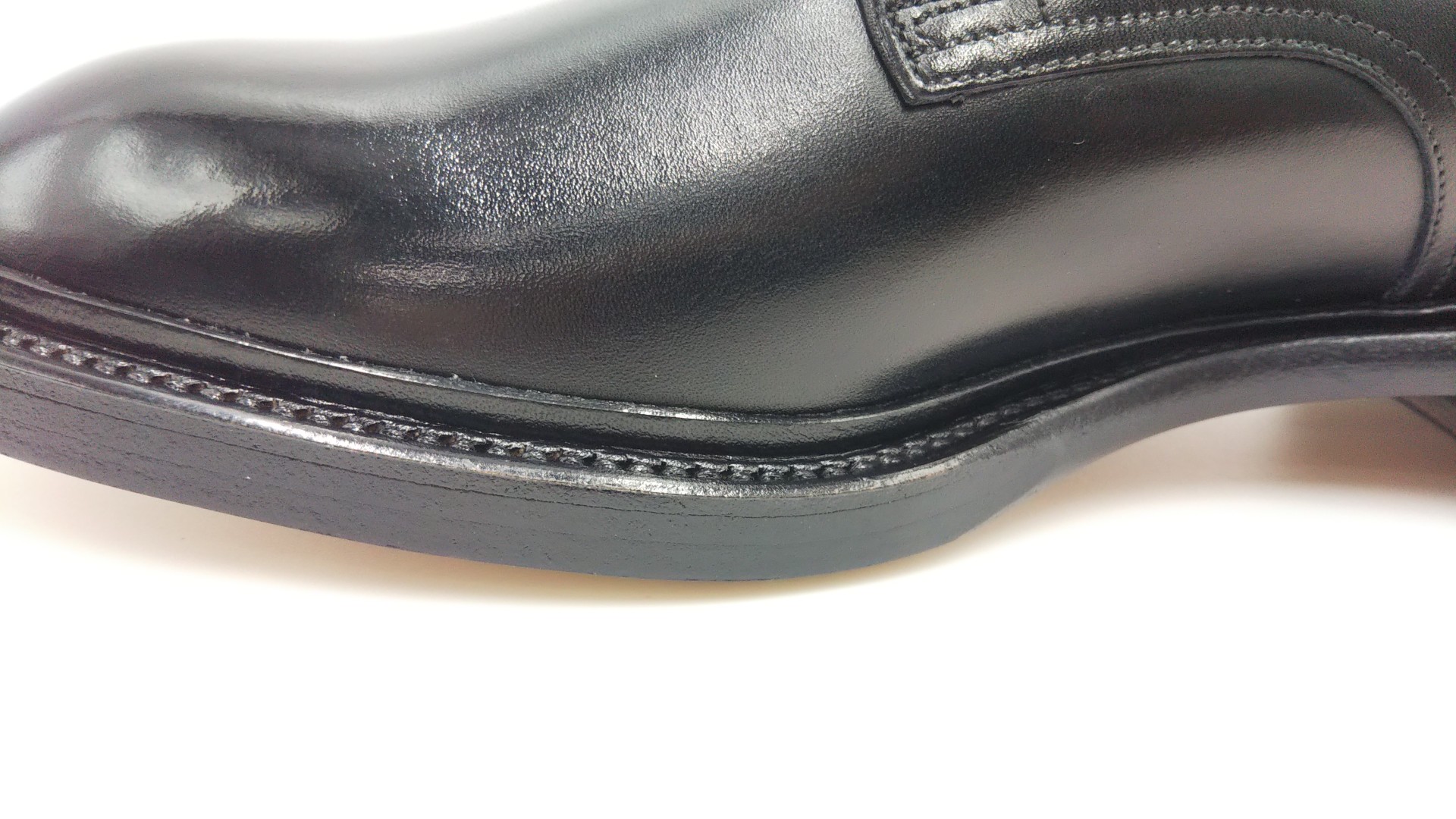 革にハリがあり牛革に比べ硬めではありますが牛革ではできない甲の独特のシワや深く濡れたようなツヤはコ-ドバンのみの魅力です。